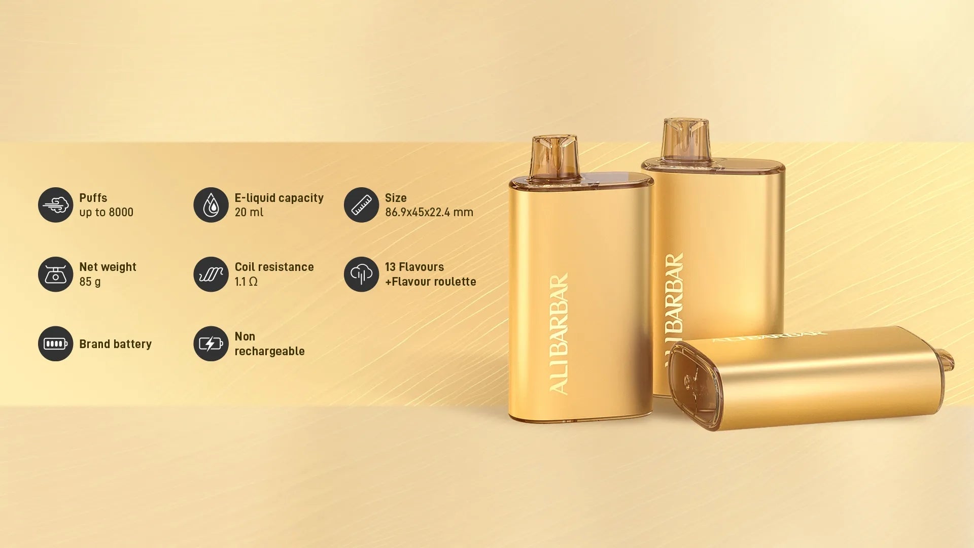 With its ergonomic design,the Alibarbar Rich 8000 fits comfortably in your hand, making it ideal for on-the-go use. The vibrant LED indicators not only add a touch of style but also keep you informed about your battery life and puff count. Choose from a variety of tantalizing flavors, each crafted to perfection, providing a delightful experience tailored to your preferences.
