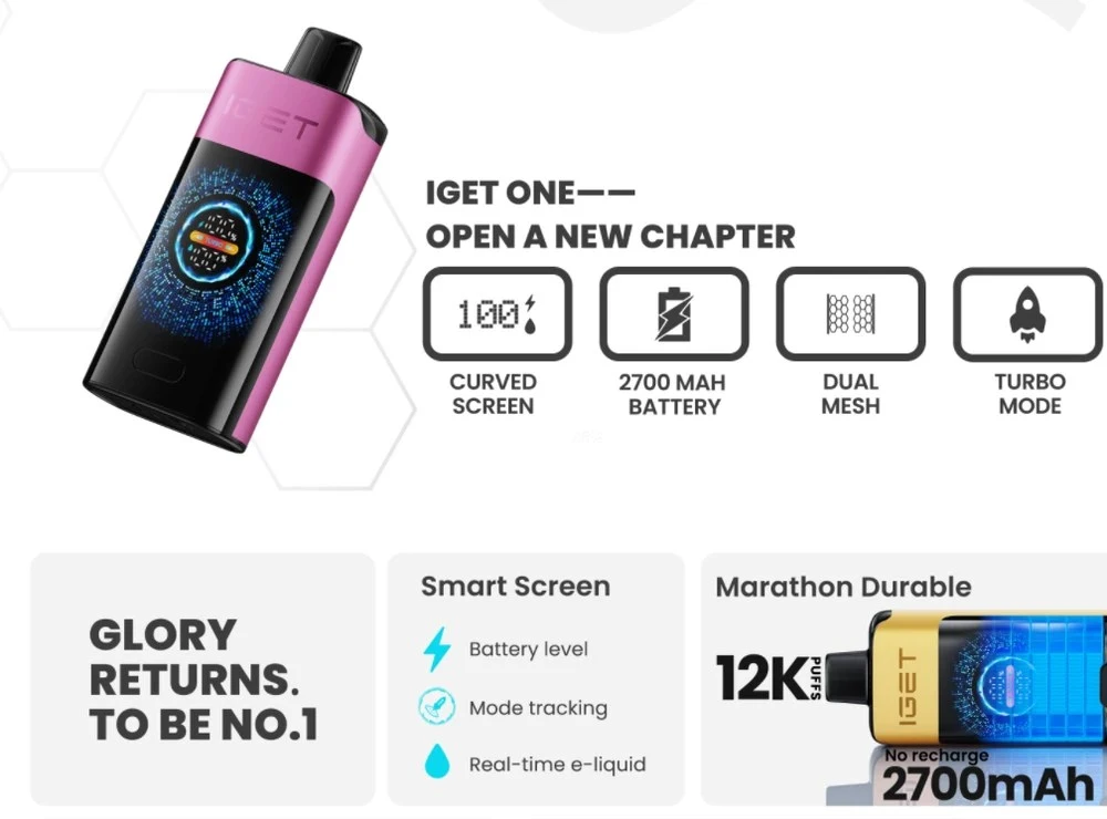 Experience the next level of vaping with the IGET ONE Series 3PCS Bundle, designed for users who want premium performance and exceptional value. Each IGET ONE vape comes pre-charged with a powerful 2700mAh built-in battery, ready to deliver up to 12,000 puffs. Activate Turbo Mode for an intense vaping experience with over 10,000+ puffs per disposable.